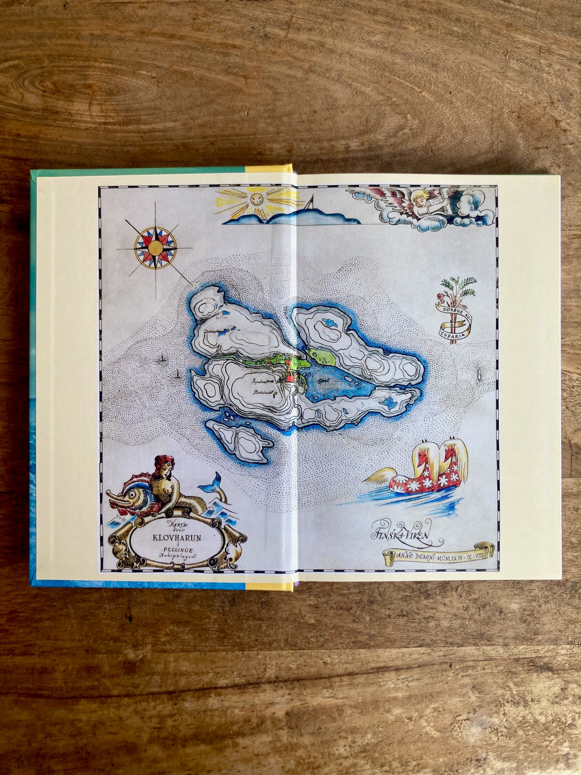 Good condition, clean pages, small bump on top of spine. Beautiful endpapers from a map penned by Tove's mother, Signe Hammarsten Jansson. Paintings by Tuulikki Pietilä throughout.